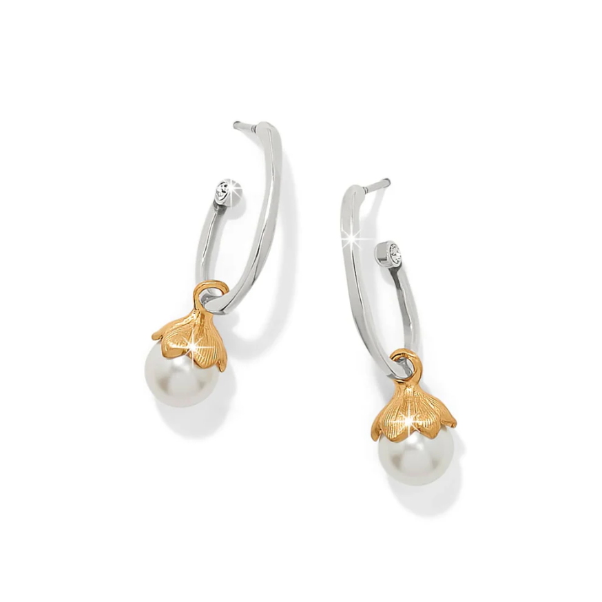 Inspired by the beauty of a flower bud just before it blooms, Brighton’s Everbloom Pearl Hoop Earrings capture the elegance of nature in a modern, wearable design. The pearl-like buds—crafted from fine quality glass pearls—rest at the base of sleek two-tone hoops for a fresh, feminine look.