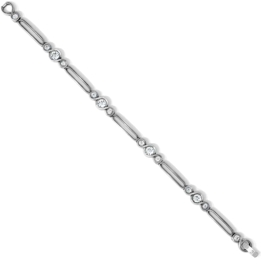 The Infinity Sparkle Bracelet by Brighton combines modern architecture-inspired design with timeless elegance. Its delicate, repeating infinity-shaped links are adorned with fine-quality crystals, creating subtle sparkle for any occasion. Silver-plated and finished with a fold-over clasp, this bracelet adjusts from 7" to 7 3/4", making it perfect for layering with other pieces or wearing alone for understated sophistication.