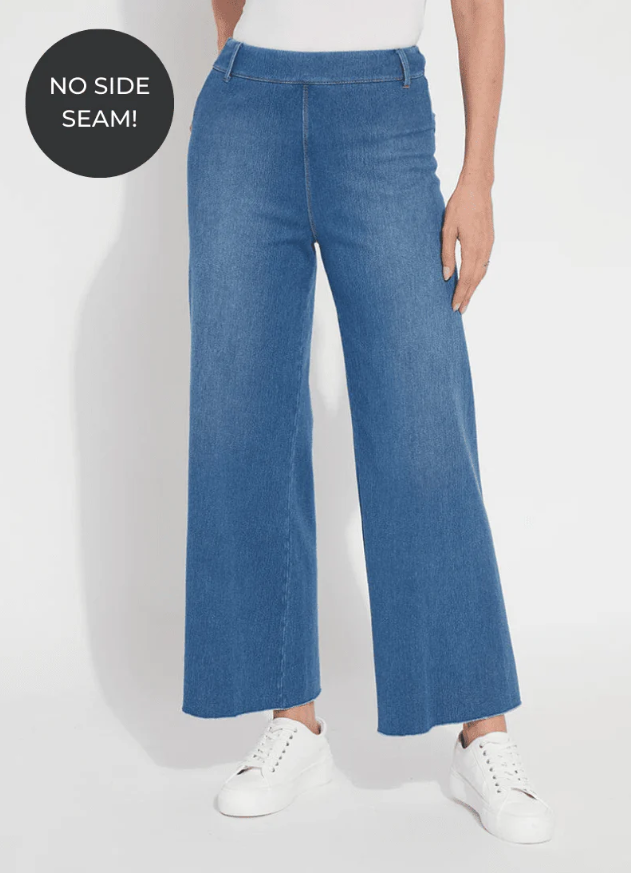 Back by popular demand and loved by both staff and customers, the Erin Wide Leg Denim is a best-seller for a reason. Made from ultra-soft, 4-way stretch Knit Denim, these jeans deliver effortless comfort with an elevated silhouette. The high-rise fit features a smoothing concealed waistband, while the relaxed, wide leg and raw-edge hem give you modern style without sacrificing ease. The 28" inseam is ideal for showing off boots or sneakers, and the raw hem makes it easy to customize your length. You’ll want to wear them every day—because you can.
