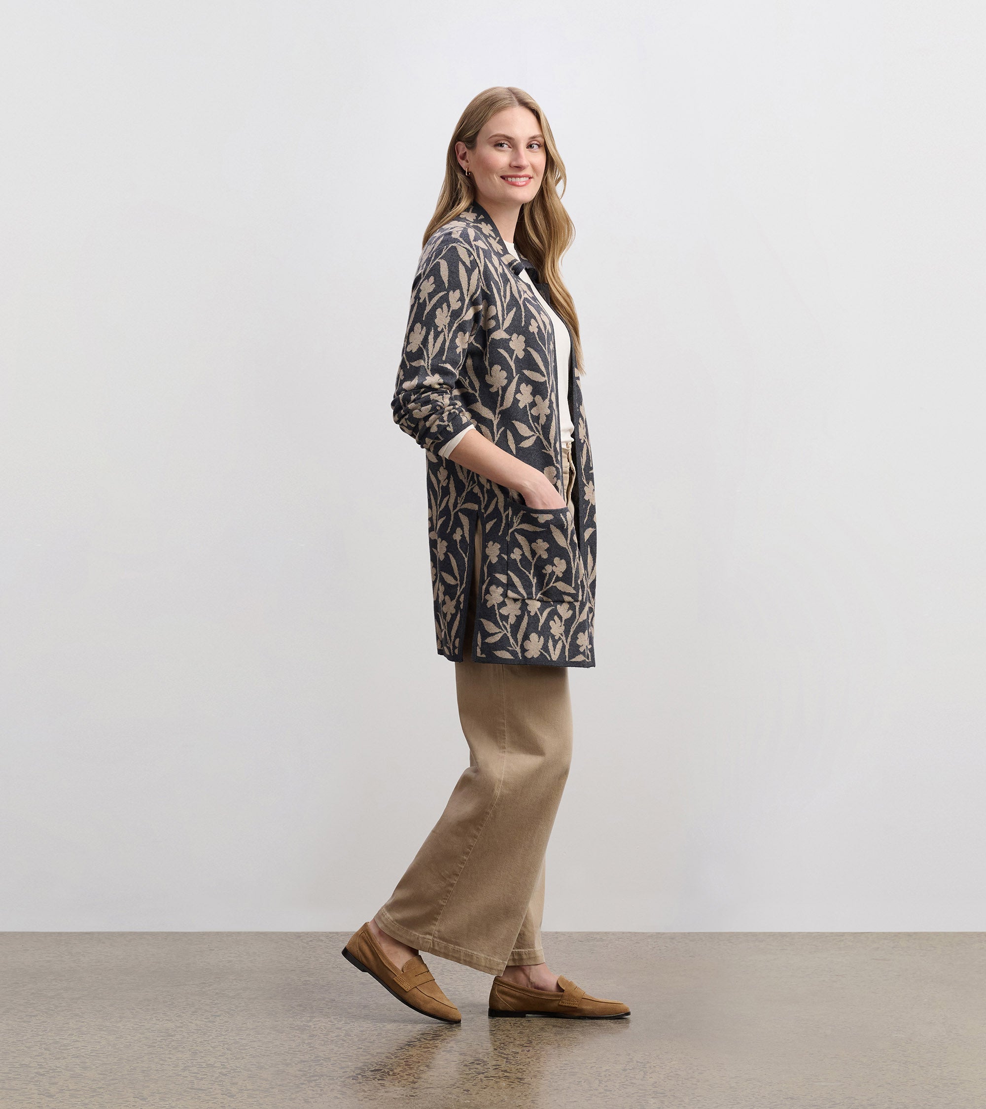 Chic meets cozy in the Hatley Sweater Blazer – Floral Vines. Designed with an all-over floral knit pattern, this mid-length sweater blazer blends the structure of a jacket with the comfort of a cardigan. Featuring an open front, notch neck with mock collar, and convenient side pockets, it’s the perfect layering piece for cool-weather days. The relaxed fit makes it easy to throw over jeans, dresses, or trousers, while the elegant floral design adds a polished touch to your fall wardrobe.