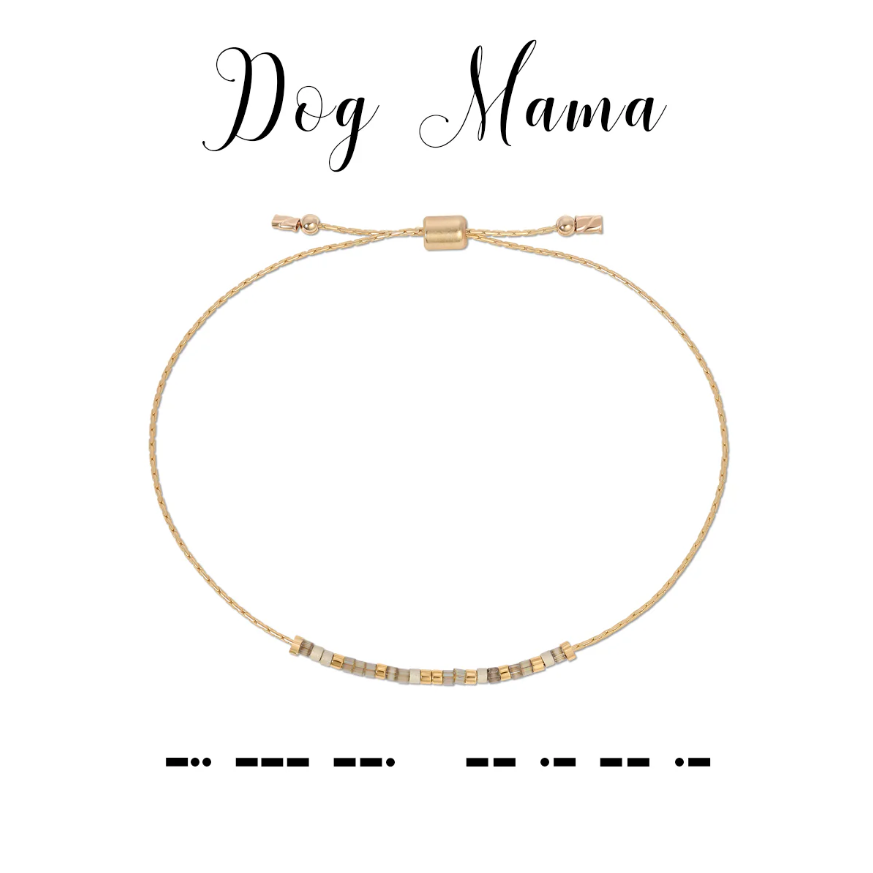 Celebrate the bond with your furry best friend! This charming bracelet encodes "Dog Mom" in beautiful beads — a perfect gift for any proud pup parent.