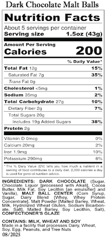 The Maple Coated Malt Balls deliver cozy, nostalgic flavor with smooth maple-infused chocolate—capturing the essence of crisp autumn days in Maine. Prefer something richer? The Dark Chocolate Malt Balls feature a generous coating of deep, smooth dark chocolate for an elevated take on a classic candy.
