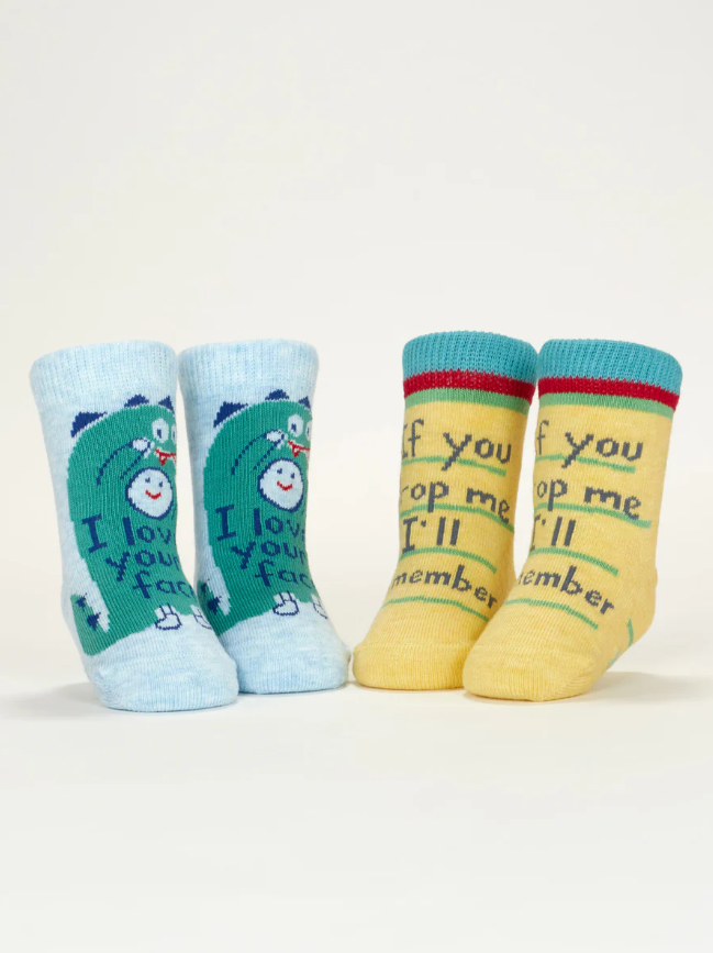 • Includes 2 pairs of funny, baby-sized socks