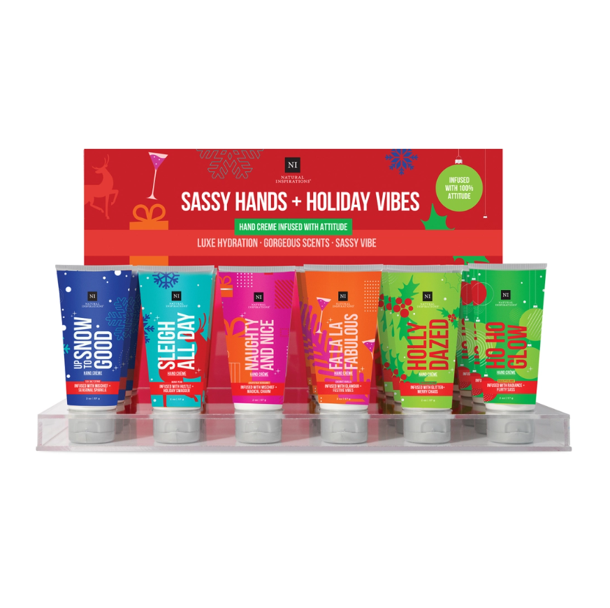 Bring a little attitude to your holiday gifting with the Sassy Holiday Mini Hand Crème collection from Natural Inspirations. Each ultra-moisturizing hand crème features a playful name, cheeky “infused with” tagline, and a beautifully crafted fragrance. Formulated with Natural Inspirations’ best-selling hand crème blend, these minis deliver rich hydration with a festive twist—perfect for stockings, hostess gifts, or self-care moments throughout the season.