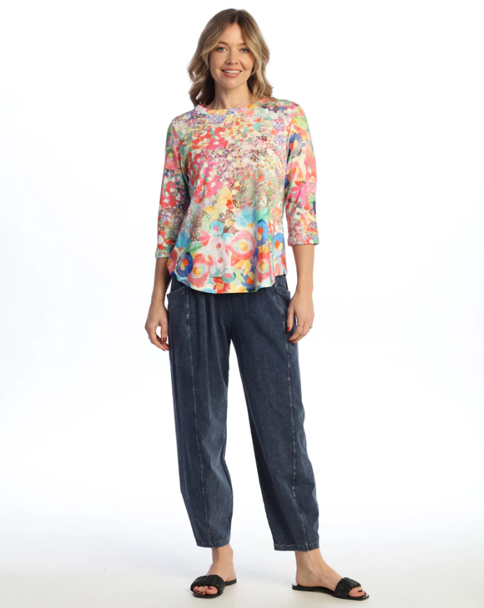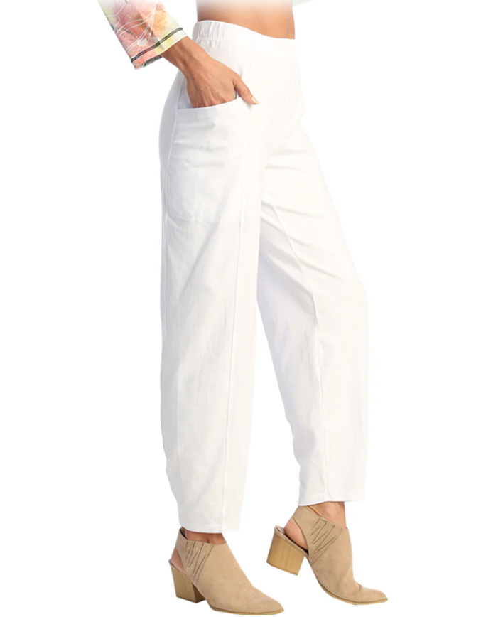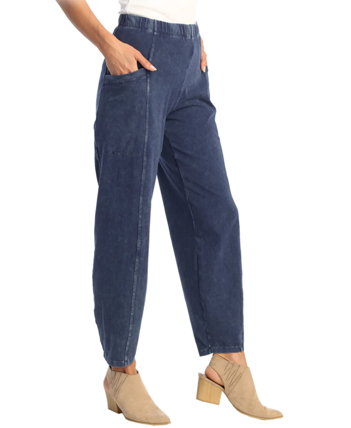 The Jess & Jane Lantern Pants are a best-selling wardrobe essentialcrafted from mineral-washed cotton with a touch of spandex for breathable stretch and all-day comfort. These pull-on pants feature a relaxed lantern-leg silhouette, side seam detailing, and practical side pockets. The flattering shape and soft feel make them your go-to for errands, lounging, or casual outings.