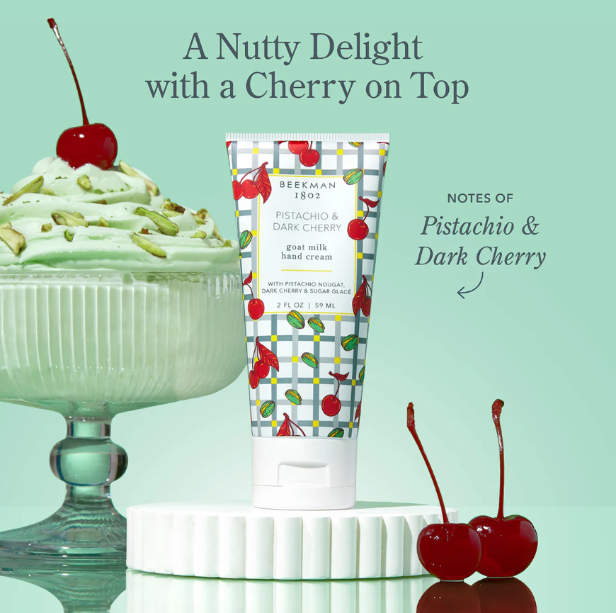 Treat your skin to a decadent dose of moisture with Beekman 1802’s Pistachio & Dark Cherry Goat Milk Lotion. This rich, creamy formula blends nourishing goat milk and shea butter to deeply hydrate, soothe, and repair dry hands—without any greasy feel.