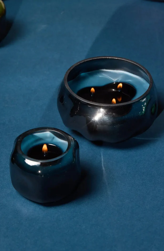 Elegant yet versatile, the 5 oz Rosewater & Santal candle layers floral rosewater with vanilla and cedar for a soft, balanced fragrance. Its jewel-toned blue glass adds sophistication to smaller spaces and later serves as a chic catchall or accent piece.