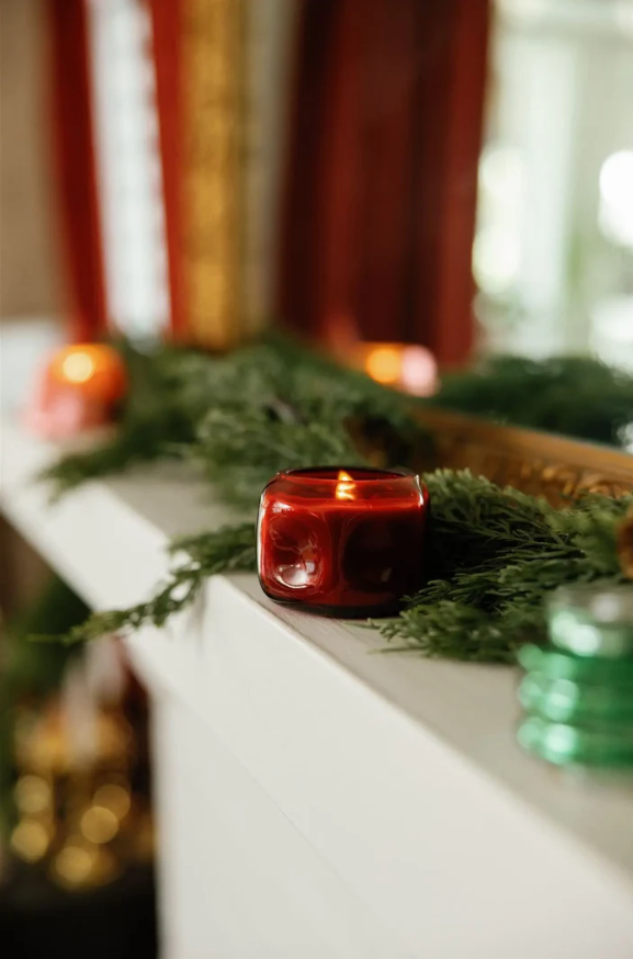 The 5 oz Yuzu Woods candle blends bright yuzu citrus with earthy evergreen woods in a versatile compact size. Perfect for gifting or small-space décor, its red glass vessel repurposes beautifully as a stylish accent jar.