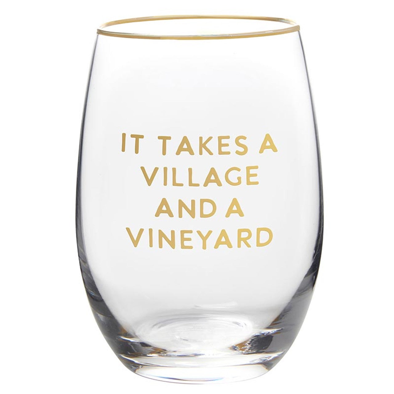 Celebrate friendship, community, and real-life support systems with the “It Takes a Village and a Vineyard” stemless wine glass. Whether you're sipping wine with friends or unwinding after a long day, this 17 oz glass is perfect for raising a toast to the people who make life better. Its modern stemless design adds style to your glassware collection and works for wine, cocktails, or any favorite beverage.