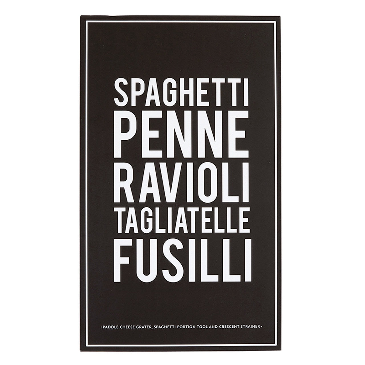 • Beautifully packaged in a book-style gift box labeled “Spaghetti, Penne, Ravioli”
