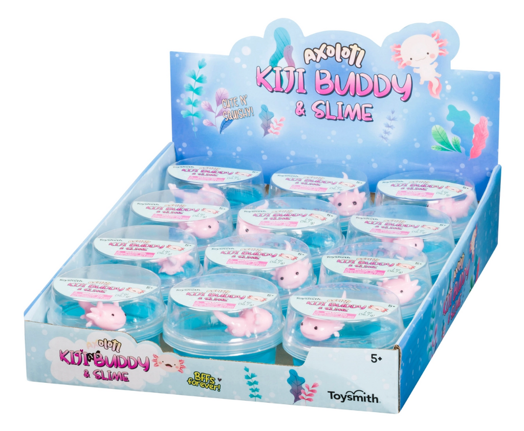 Make playtime extra magical with the Toysmith Kiji Buddy Axolotl & Slime! This adorable pink axolotl is soft, squishy, and oh-so-cute, and it comes nestled in a tub of gooey, glittery blue slime for double the fun. Kids can stretch, squish, and squeeze the slime while letting their little axolotl “swim” through it—creating an engaging, hands-on sensory experience that’s as silly as it is satisfying. Parents love that it’s a screen-free toy that encourages imaginative play while also providing calming sensory benefits. The slime has a soft, gooey texture that kids love to manipulate, while the axolotl figure adds an extra layer of pretend play—turning each session into an underwater adventure. Compact and portable in its own resealable tub, this set is perfect for on-the-go entertainment, classroom rewards, party favors, or stocking stuffers. The slime is reusable, and the squishy axolotl can be rinsed clean, making it a low-mess option that parents appreciate just as much as kids enjoy.