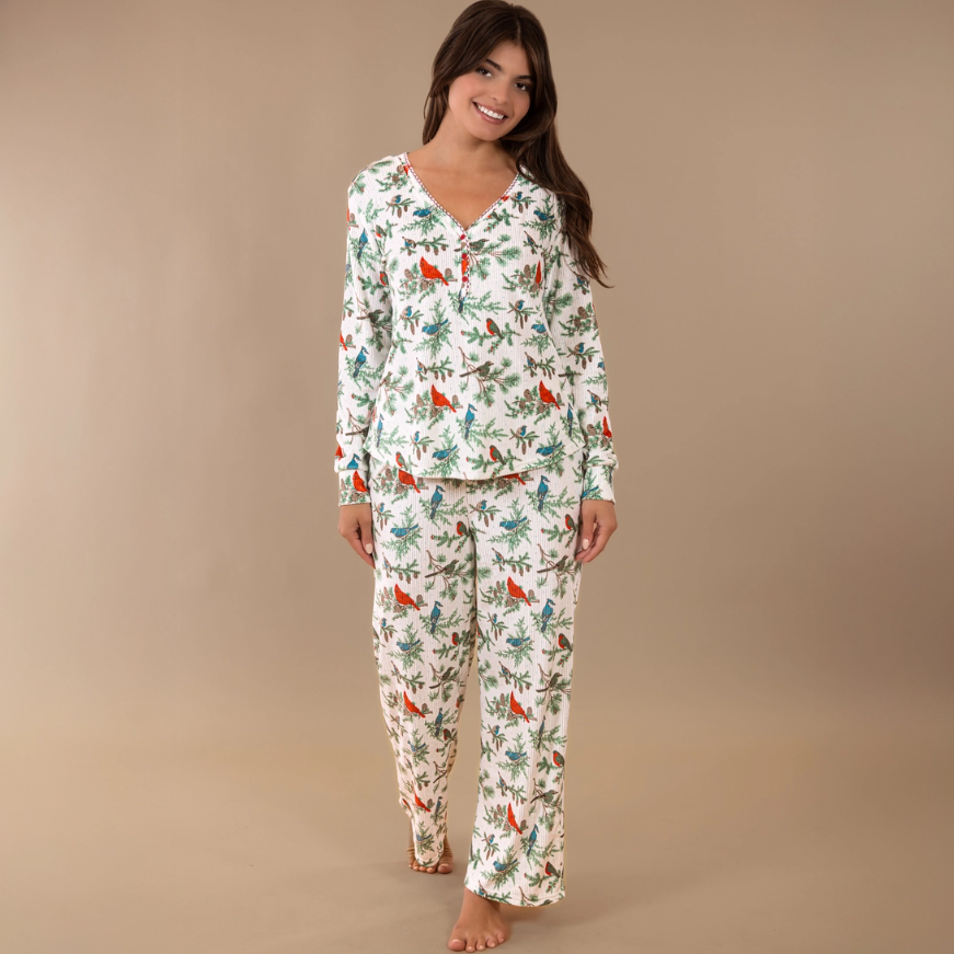 Front view of PJ Salvage Butterfly Grove Pajama Set with dog and butterfly print