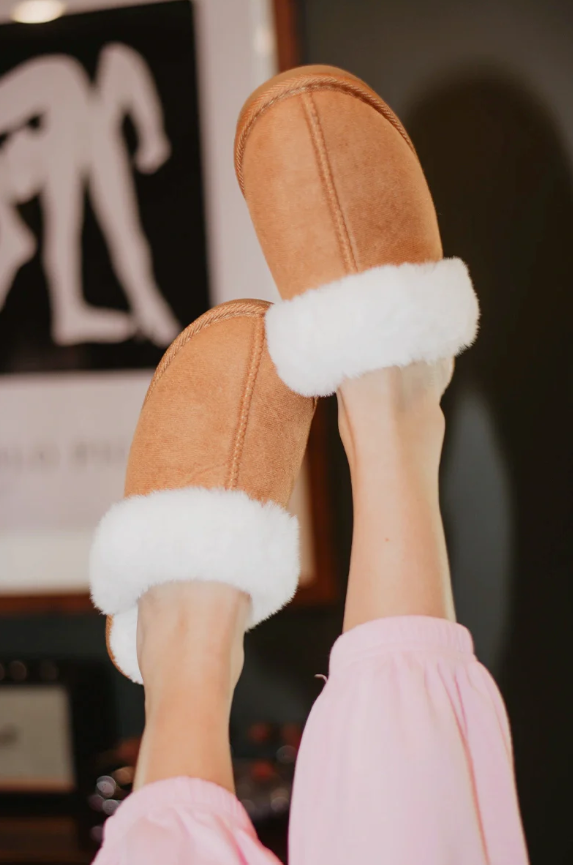 Hello Mello Cuddlers Heated Slippers in plush fabric with elastic heel