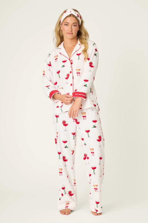 Front view of PJ Salvage Playful Prints Martini Pajama Set in bubblegum pink