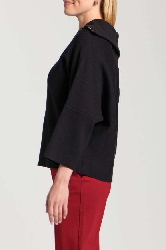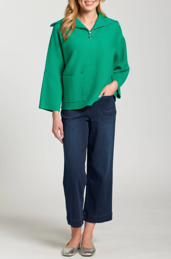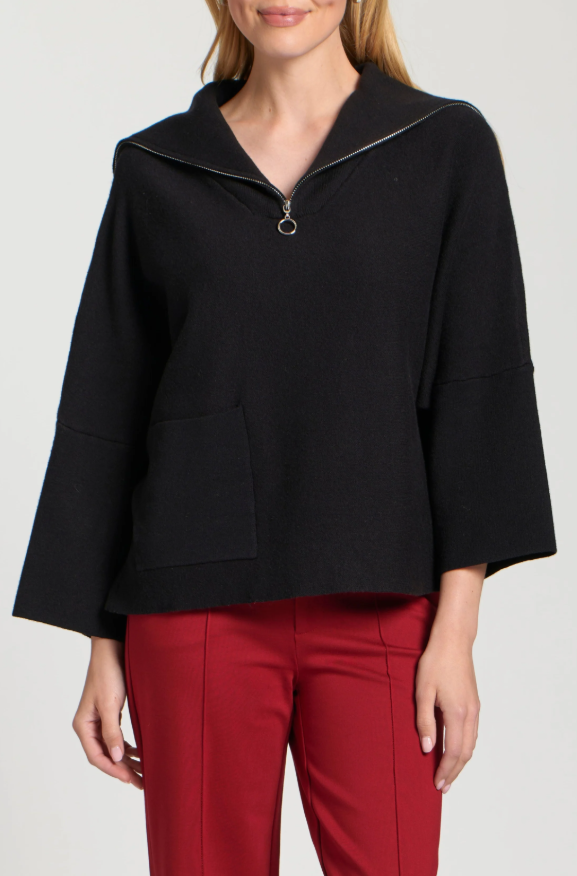 Upgrade your casual wardrobe with this Half Zip Pullover from APNY. The half-zip closure allows for easy adjustability, creating a flattering V-neckline while the collared design adds a sporty, structured touch. Crafted from a soft, blended knit, this pullover features 3/4 sleeves and a convenient single front patch pocket—perfect for keeping essentials close or adding a casual style detail. Ideal for layering, lounging, or elevating your everyday look with effortless comfort and modern flair.