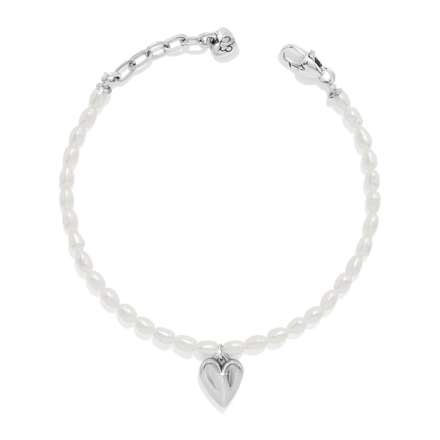 Add a touch of sophistication to your wrist with the Cascade Embrace Pearl Heart Bracelet from Brighton. Exquisitely shaped with the fluid lines the Cascade Collection is known for, this adjustable bangle blends elegance and comfort. A strand of freshwater rice pearls gracefully embraces a petite two-tone heart, creating a delicate, eye-catching design.