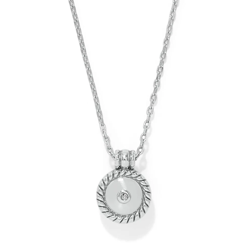 Add celestial elegance to any outfit with the Illumina Celeste Dome Necklace by Brighton. Fine crystals are delicately encrusted in a dome shape and framed by a subtle roped border, creating a look of quiet luxury and refined sparkle. Available in gold-plated or silver-plated finishes, this adjustable necklace can be worn from 18" to 20" with a lobster-claw closure, making it a versatile addition to any jewelry collection—perfect for layering or as a standalone statement piece.