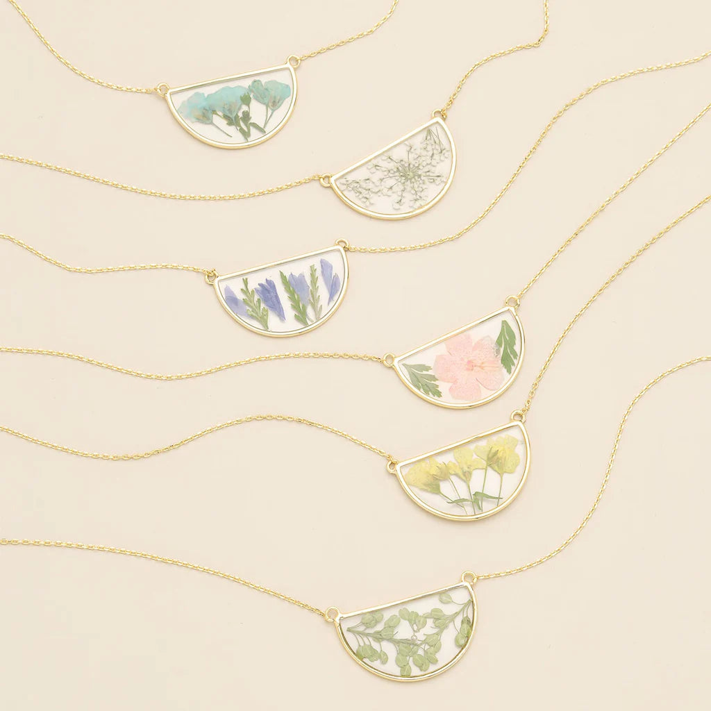 Because each piece is created with real pressed flowers, no two necklaces are exactly alike—adding to the charm and individuality of every design.