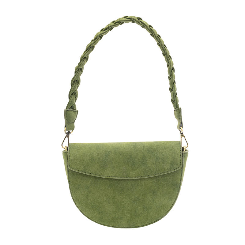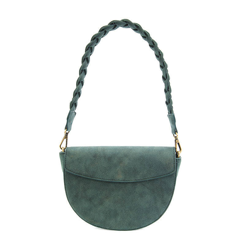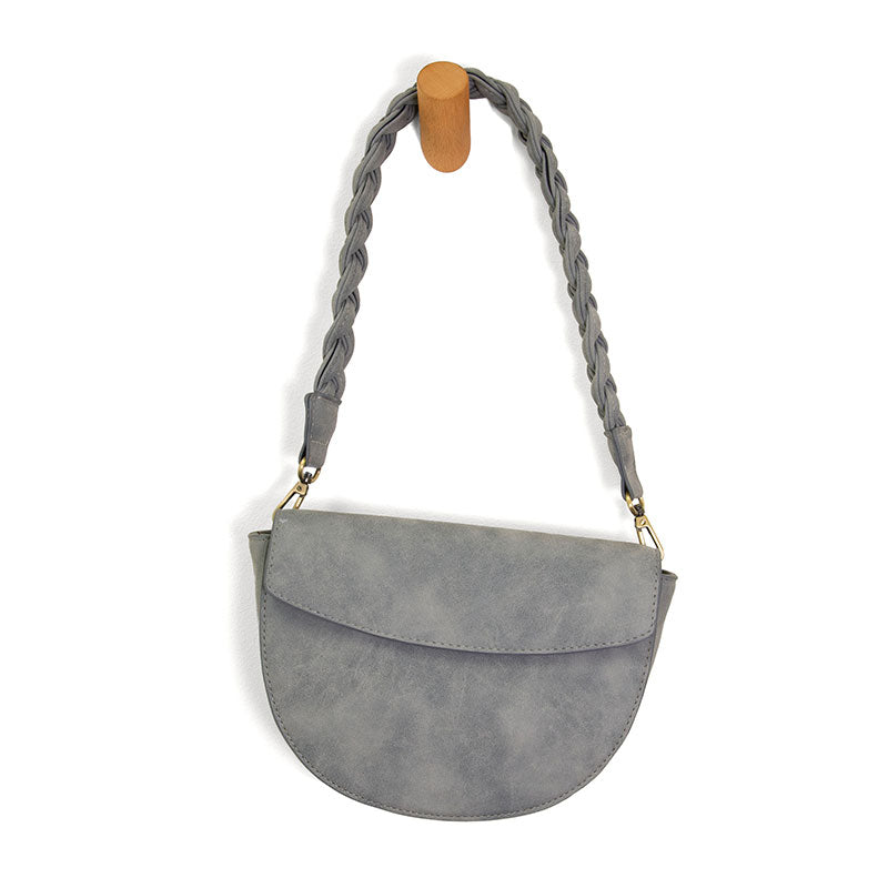 In a stylish half-moon shape and accented with a chunky braided short shoulder strap to add artisanal style to your look.  This adorable bag is equipped with a magnetic snap and zip closure to keep your belongings secure, an exterior back pocket to store your phone and also comes with a longer detachable, adjustable cross body strap for when you want to go hands free.