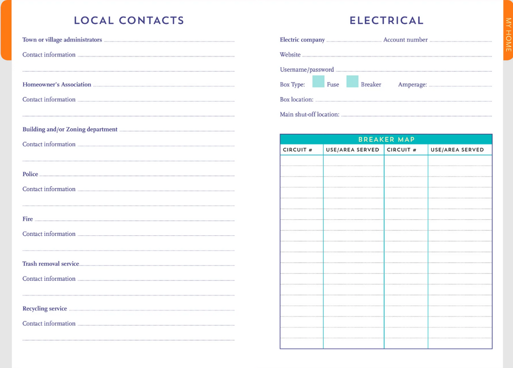• Gather all the details here -- from your real estate agent to your attorney, from utilities and community info to plumbers, electricians, remodeling plans, and beyond.
