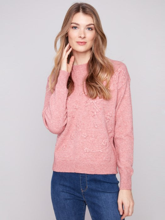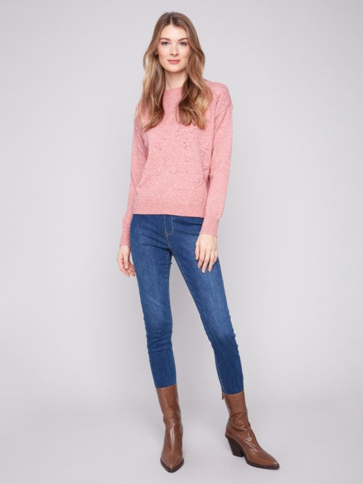 Slip into effortless style with this Crew Neck Sweater with Tonal Embroidery by Charlie B. Crafted with a luxuriously soft blend, this sweater features a drop shoulder silhouette and relaxed fit for that easygoing, cozy feel. Delicate tonal embroidery adds subtle texture and depth, giving this everyday essential an elevated twist. Whether you're dressing it up with trousers or keeping it casual with jeans and a scarf, this piece offers seasonless versatility and timeless charm.