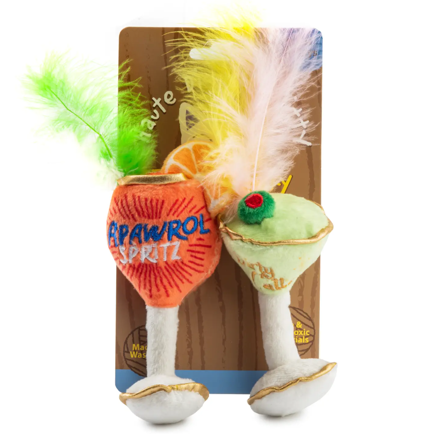 Treat your kitty to a taste of the good life with our Diggity Dog Cat Toys—a cheeky collection of plush parody toys inspired by your favorite drinks. Each set includes two soft, bite-sized toys infused with premium organic catnip for a meow-velous play session your cat will adore.