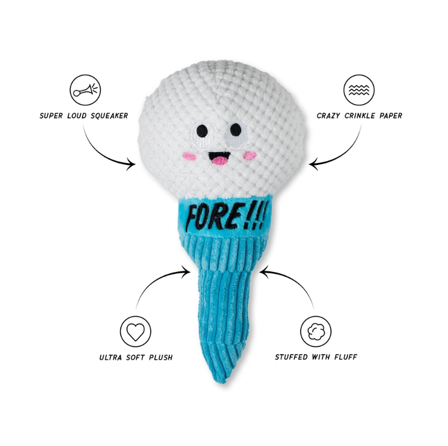Welcome to Wagsdale, where playtime is always a win! The Today Is Tee-Rific Plush Dog Toy is made for pups who love sports and squeaky fun. Shaped like a golf ball on a tee, this toy features a super loud squeaker and crazy crinkle paper for multi-sensory excitement. Whether it’s tossed across the yard or squeaked during cuddle time, your dog will be all fore it!