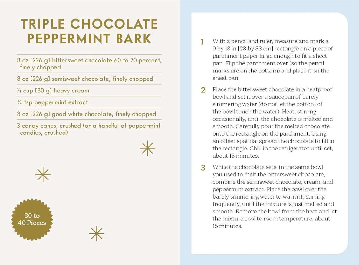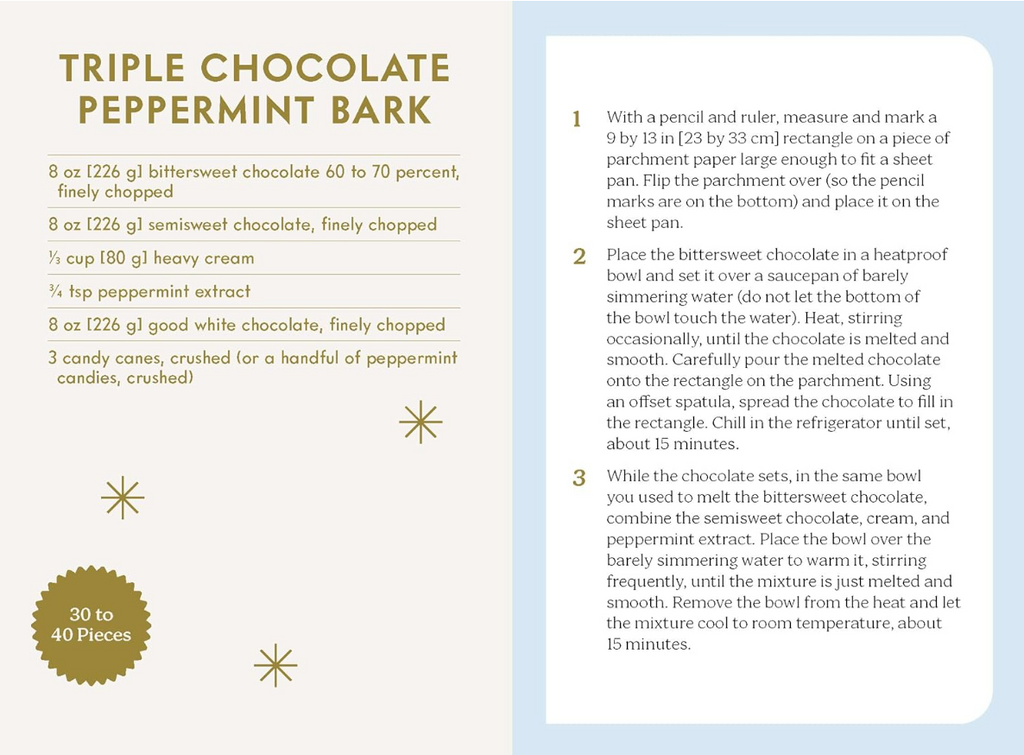 Ready to celebrate the most delicious time of year? This deck is your go-to guide for holiday brunches, seasonal parties, cookie swaps, showstopping desserts, and incredible edible gifts for family and friends. Tucked into a beautifully designed portable box, each recipe card features a full-color photo and easy-to-follow instructions for seasonal delights and creative riffs on classic bakes for Christmas, Hanukkah, New Year’s Day, and beyond, including: