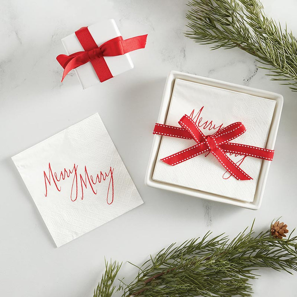 • Includes 20 holiday-themed “Merry Merry” paper napkins