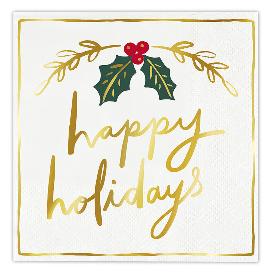 • Includes 20 “Happy Holidays” paper napkins