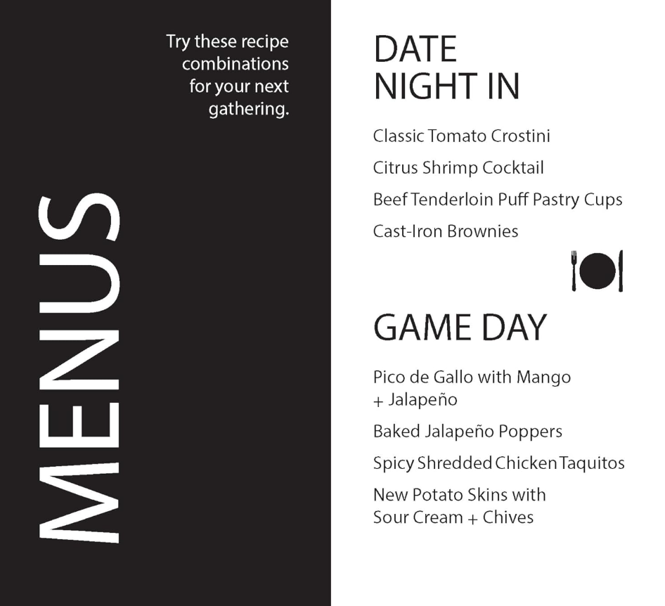 Browse the deck and select one recipe or mix-and-match to create a delectable spread with such options as: