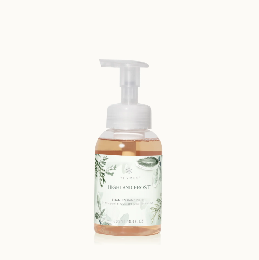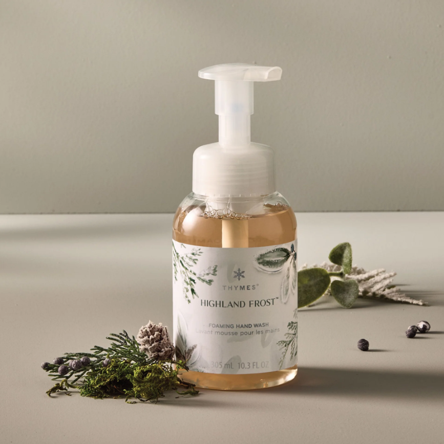 Elevate your hand care ritual with the refreshing scents of Thymes Foaming Hand Wash, available in two seasonal favorites: Highland Frost and Frasier Fir. Each self-foaming formula creates a silky, hydrating lather that gently cleanses while leaving hands soft, refreshed, and lightly scented.