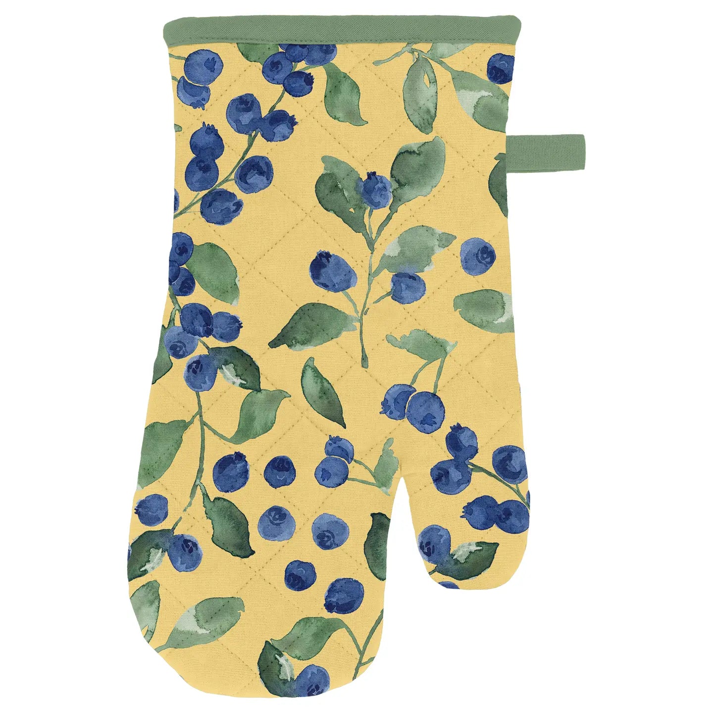 Bring a touch of New England charm into your kitchen with the Blueberry Oven Mitt, featuring a watercolor-inspired blueberry and leafy sprig design on a soft buttery yellow background. This quilted cotton mitt blends everyday function with painterly farmhouse style, making it as beautiful as it is practical.
