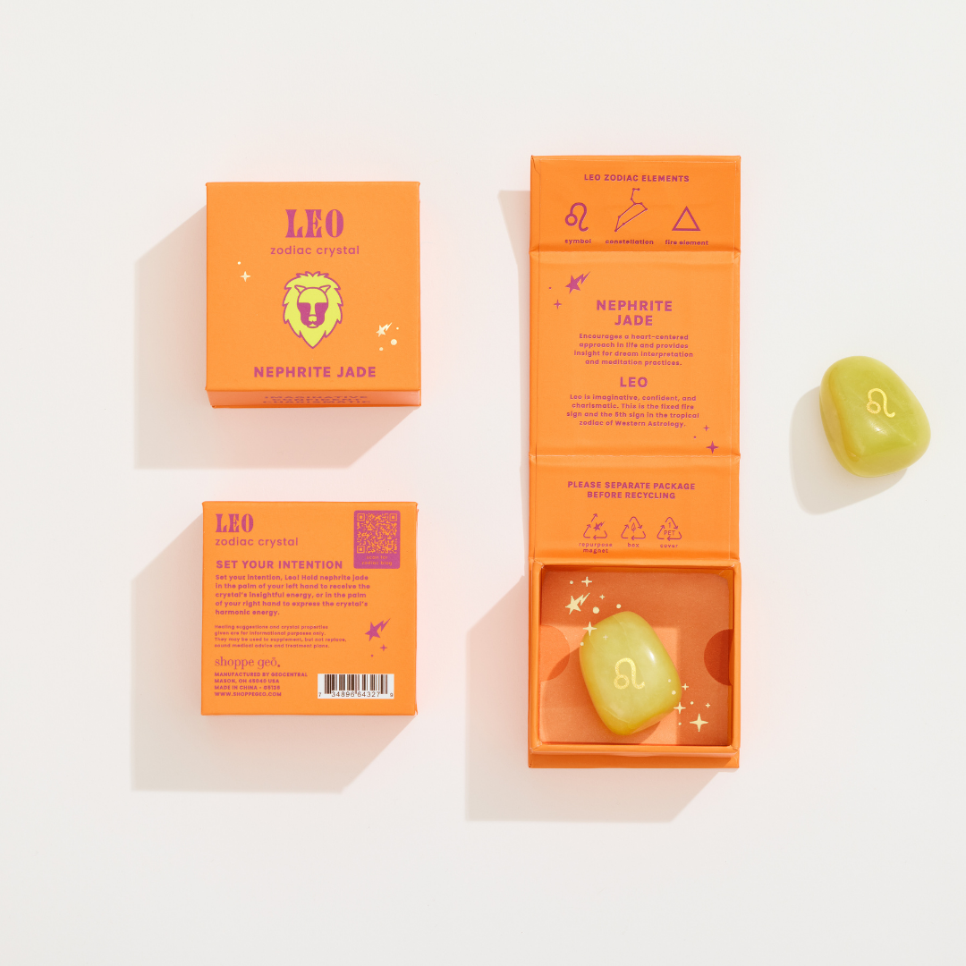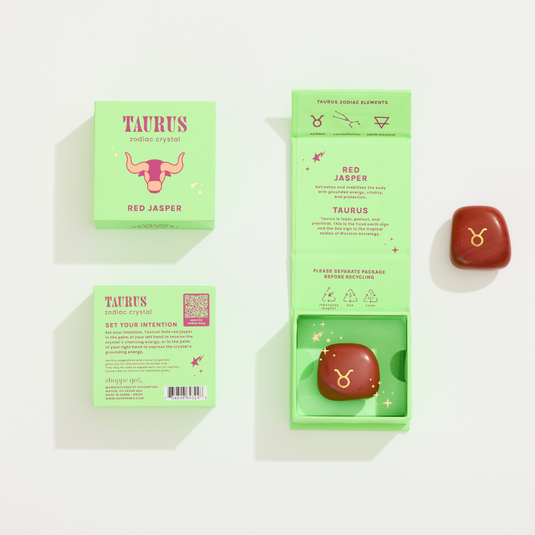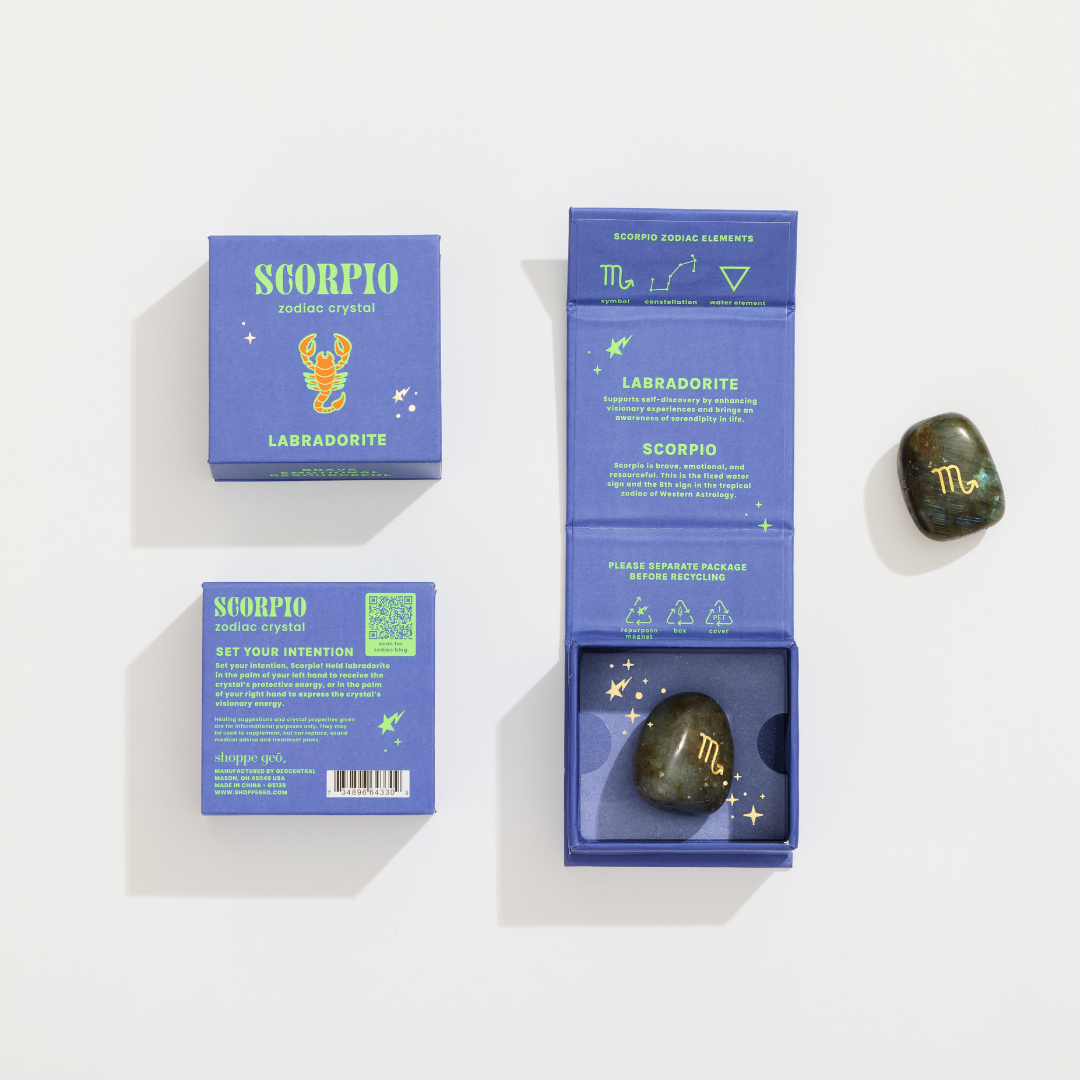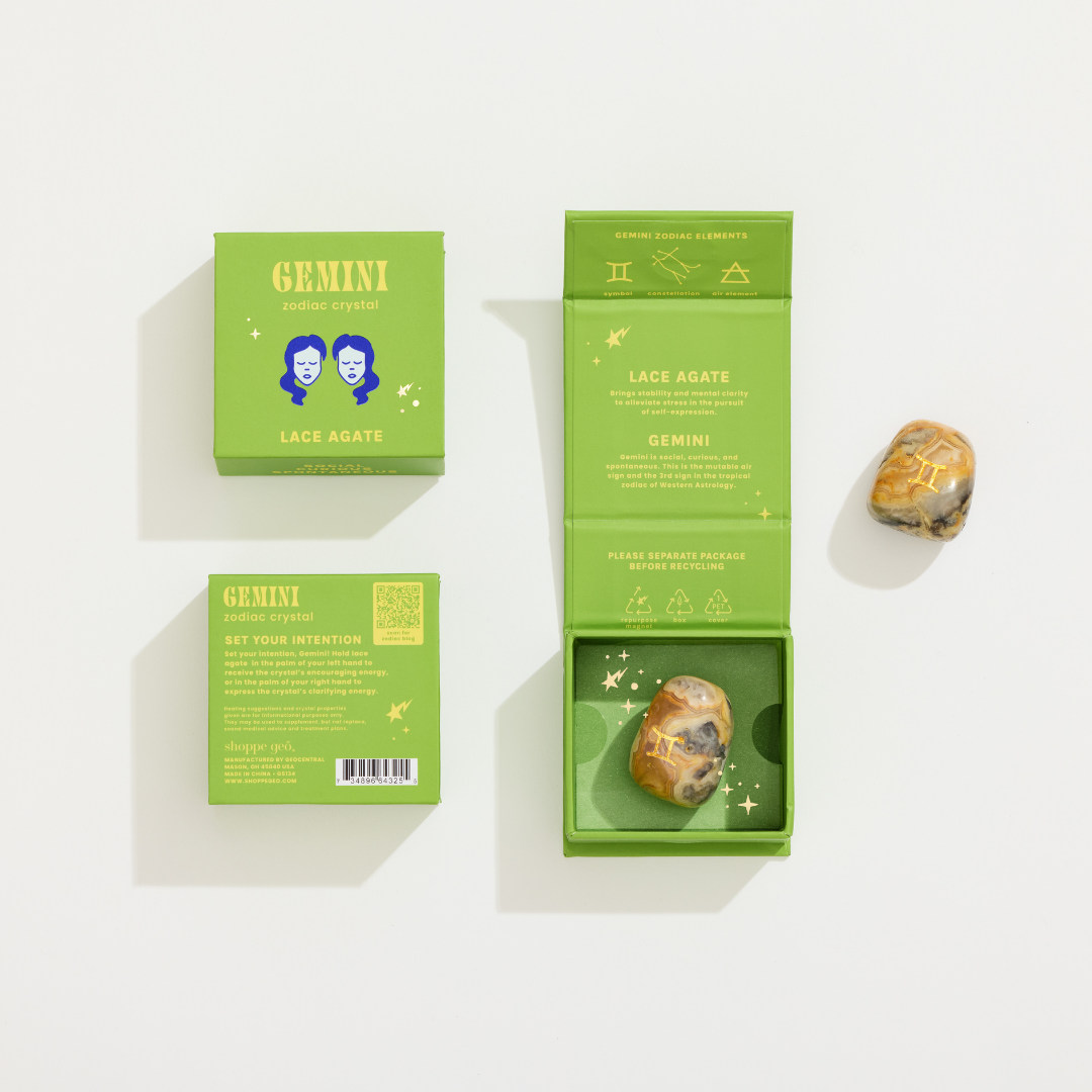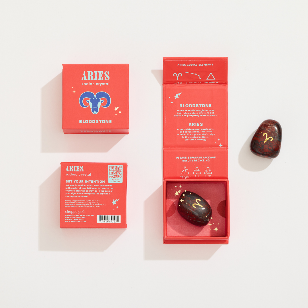 Each zodiac sign includes its own unique crystal, selected for its metaphysical associations and symbolic connection to that sign. A QR code inside the box links to bonus digital content for an added interactive touch.