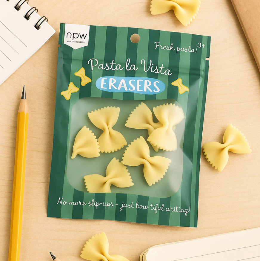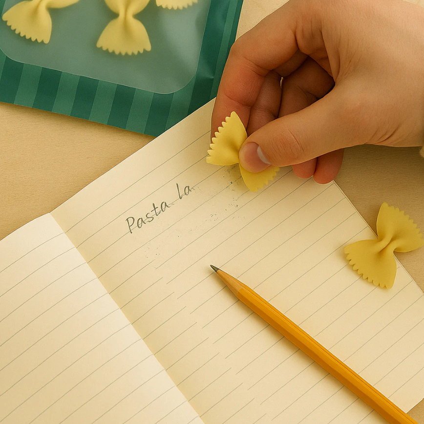 Whether you're doodling, note-taking, or correcting small slip-ups, these pasta-inspired erasers keep things fun — because when it comes to erasing mistakes, the pasta-abilities are endless!